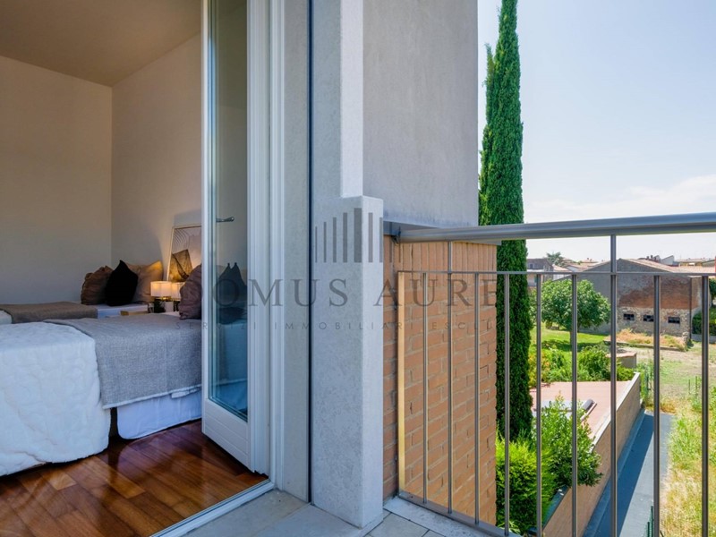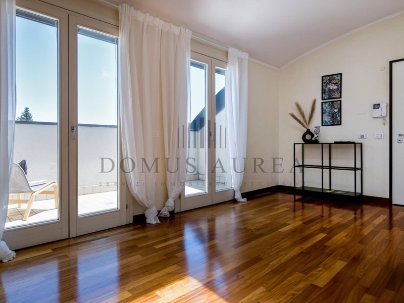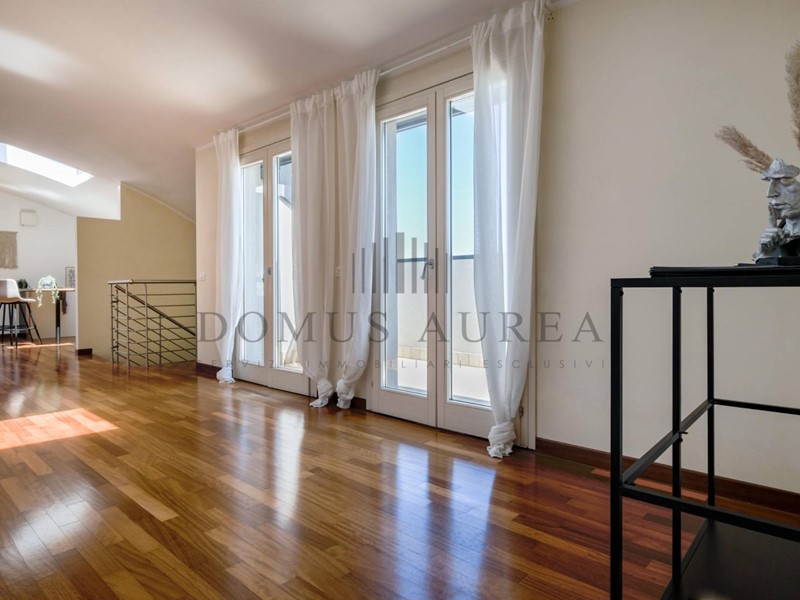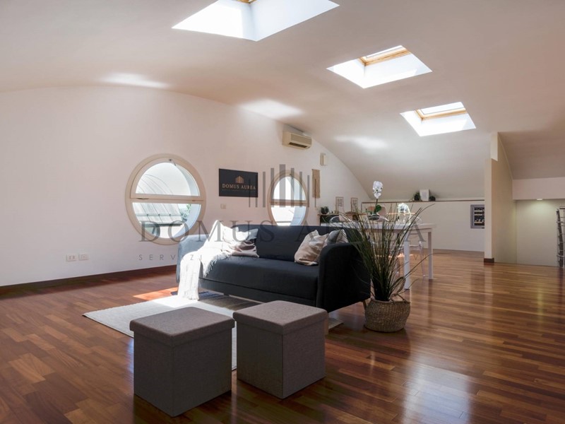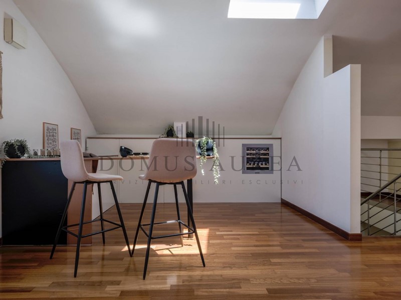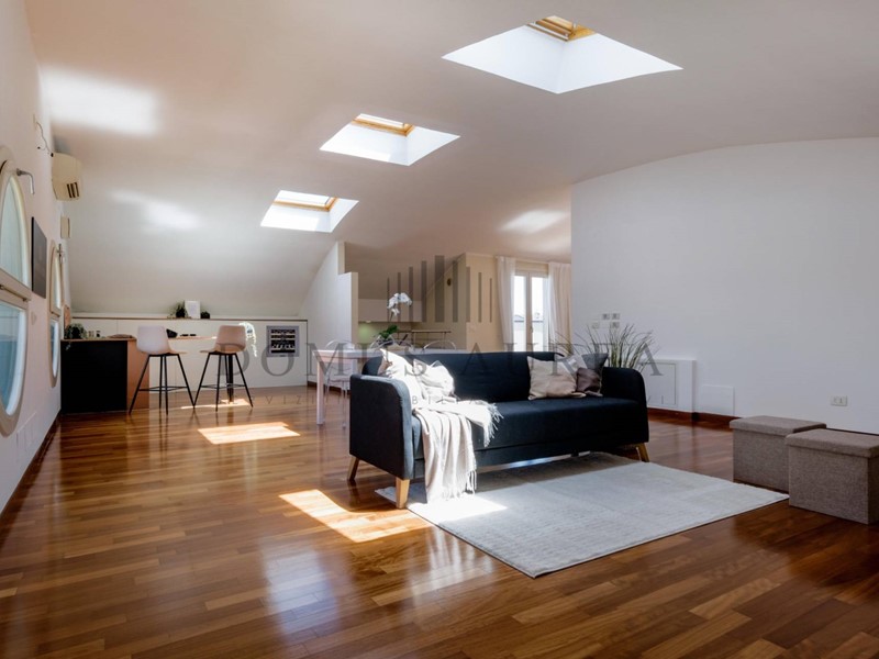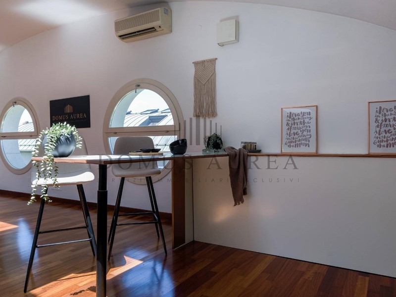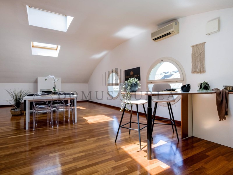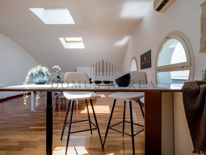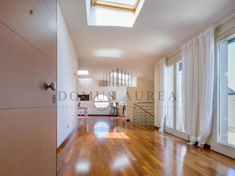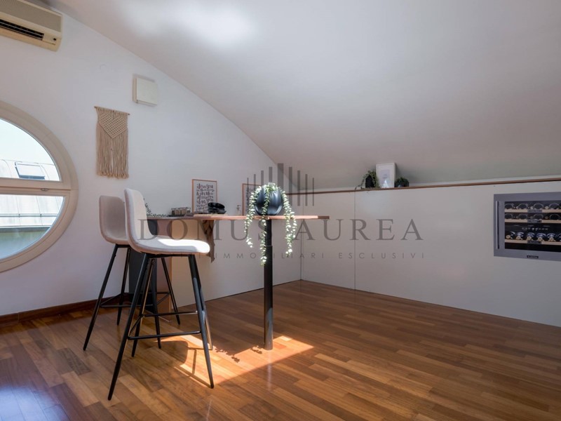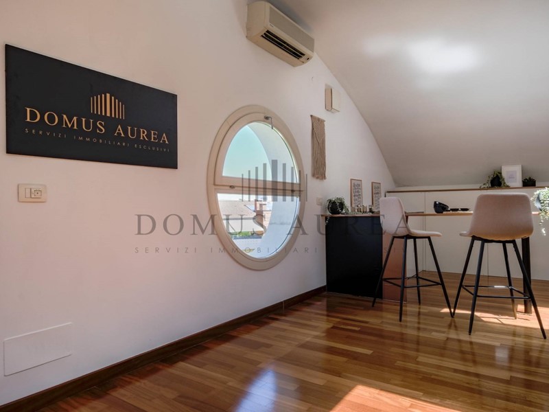 In elegante palazzina di quattro piani totali, proponiamo esclusivo attico disposto su due livelli, situato al secondo e terzo piano, servito da ascensore con ingresso da vano scala comune. L'ingresso si apre su una spaziosa e luminosa zona living in open space, caratterizzata da un design moderno ed accogliente. La zona giorno si affaccia su una splendida terrazza, ideale per momenti di relax allaperto, completa di tenda motorizzata. A valorizzare ulteriormente lambiente originali finestre rotonde che conferiscono un tocco architettonico distintivo e ricercato.