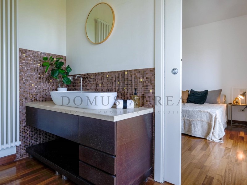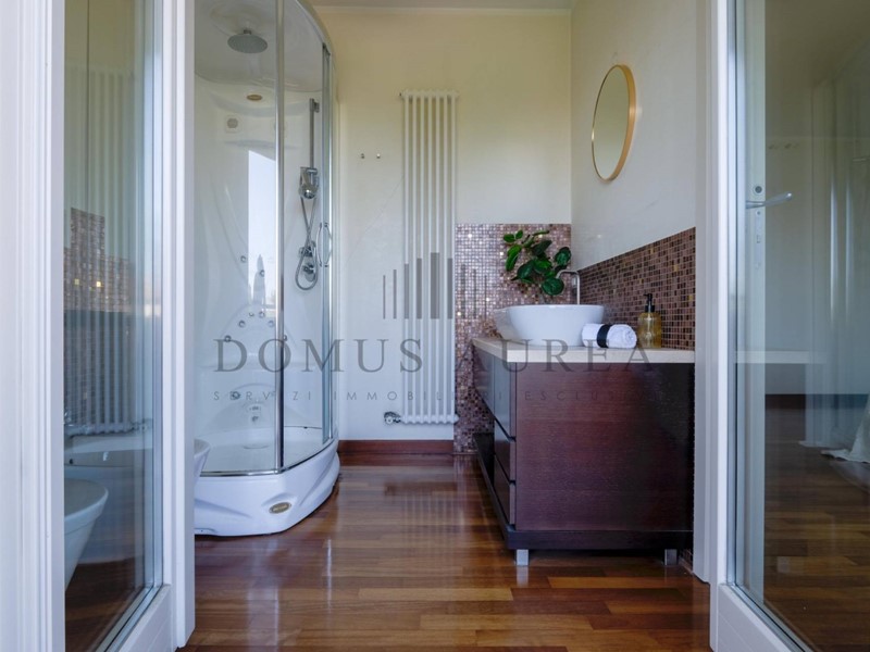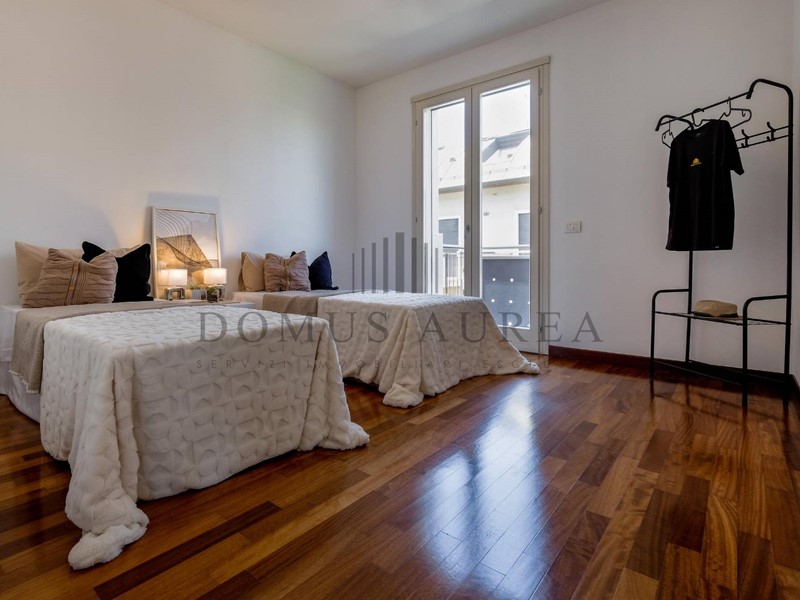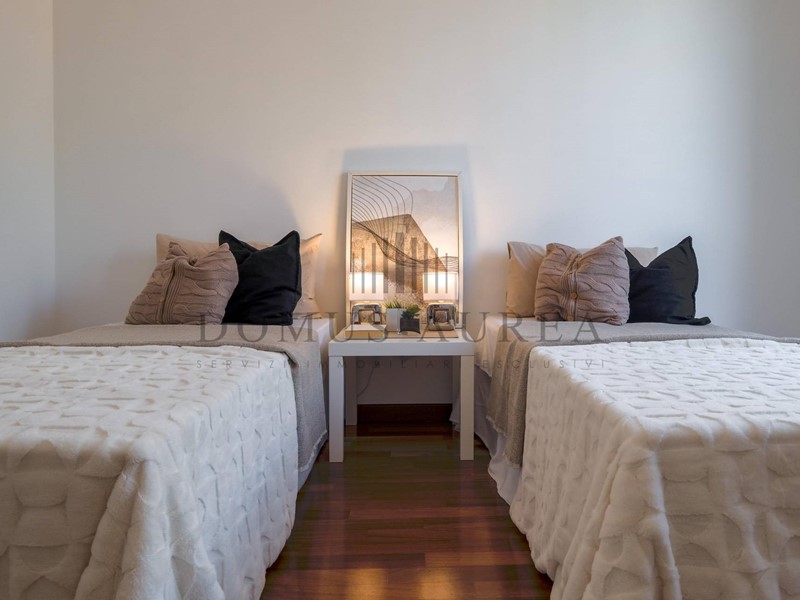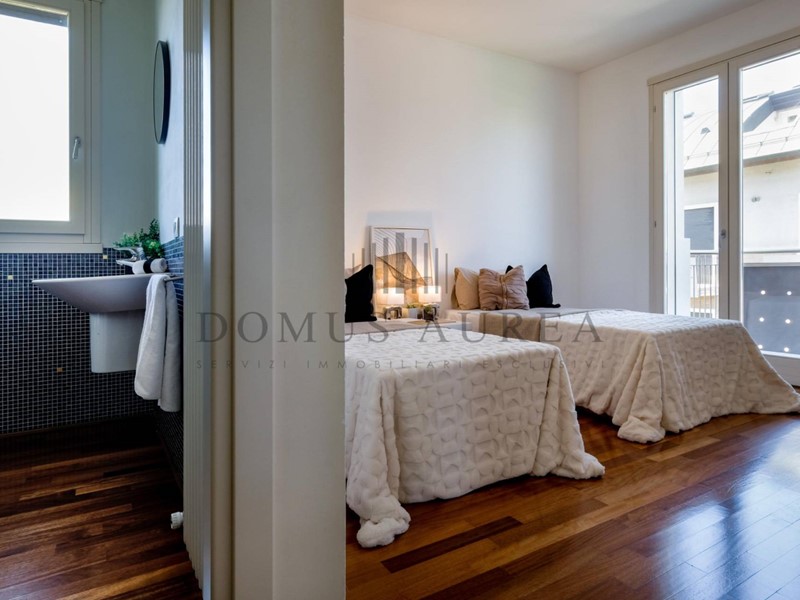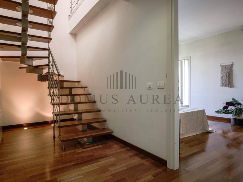 Mediante una scenografica scala di design che unisce il calore del legno e la solidità del metallo si ha laccesso alla zona notte dove troviamo tre camere da letto di generose metrature, tutte con accesso a comodi terrazzini privati. La distribuzione interna include inoltre tre bagni , due dei quali a uso esclusivo delle camere e una funzionale lavanderia. Una delle camere principali è dotata di elegante cabina armadio.