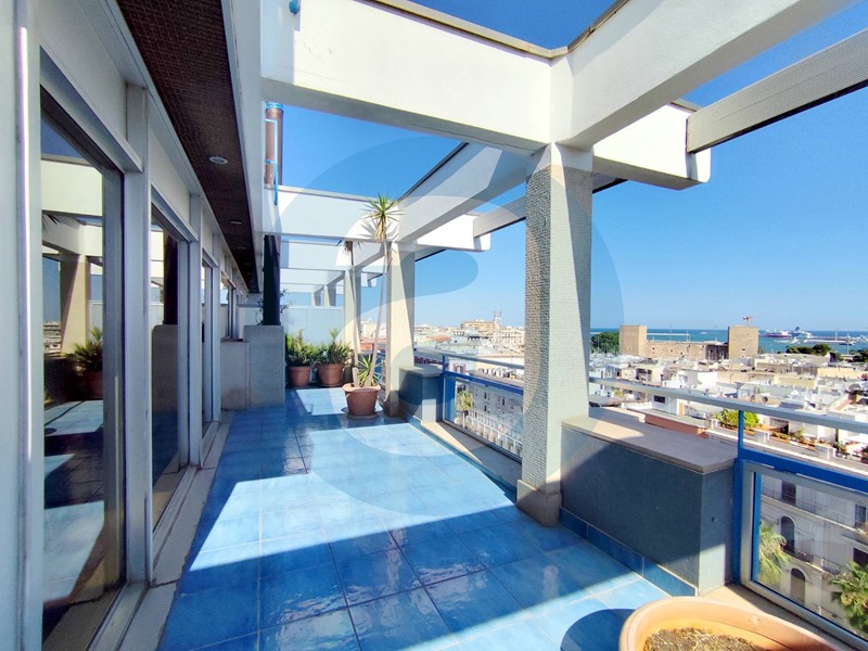 ESTERNO: Appartamento al nono piano in uno stabile di dieci piani, dotato di ascensore. Terrazzo angolare di 57 mq con vista mare e sulla città vecchia. Terrazzo di 30 mq con affaccio interno e su Via Sparano. Servizio di portineria.