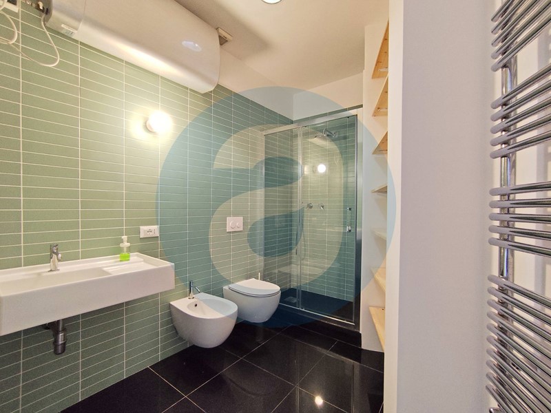 INTERNO: Appartamento di 100 mq composto da ingresso in zona giorno con angolo cottura e accesso sul terrazzo; camera da letto matrimoniale con bagno privato, dotato di doccia extrasize e sanitari sospesi; camera singola; bagno con doccia extrasize e sanitari sospesi.