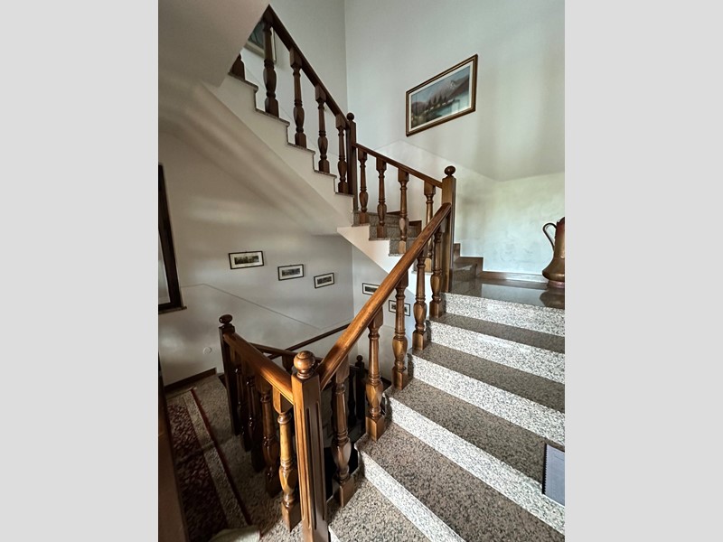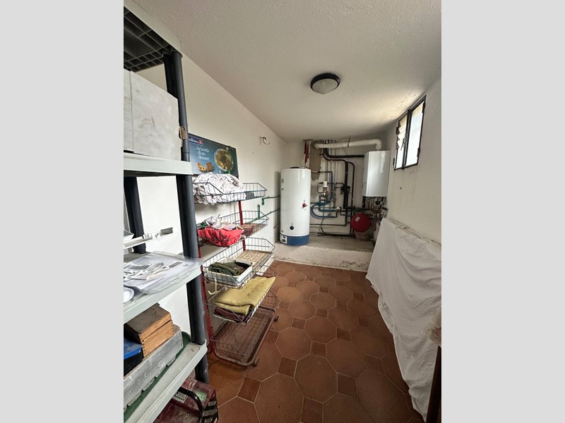 L'intero immobile è collegato da un unica scala comune che raggiunge vari livelli, compreso l'interrato, dove troviamo un box quadruplo, un ripostiglio, una lavanderia e il locale caldaia. Si dispone inoltre di una taverna con camino e ulteriore cucina.