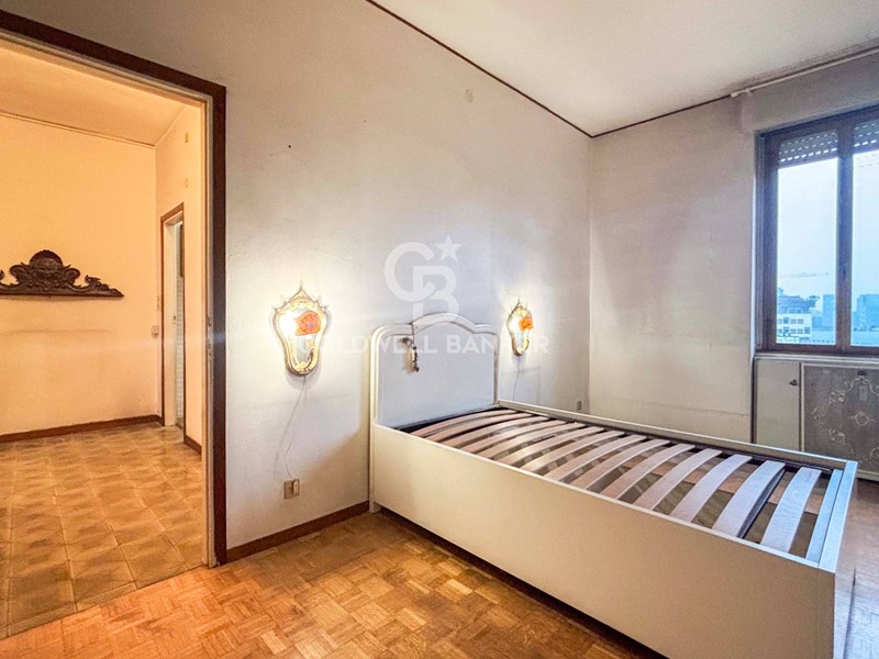In elegante stabile edificato a fine anni 50, dotato di ascensore, proponiamo trilocale al settimo piano con doppia esposizione e ottima luminosità.