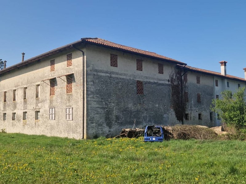 Rustico isolato di angolo fra 2 strade pubbliche con ampio scoperto pertinenziale e annessi agricoli disposto a "L".