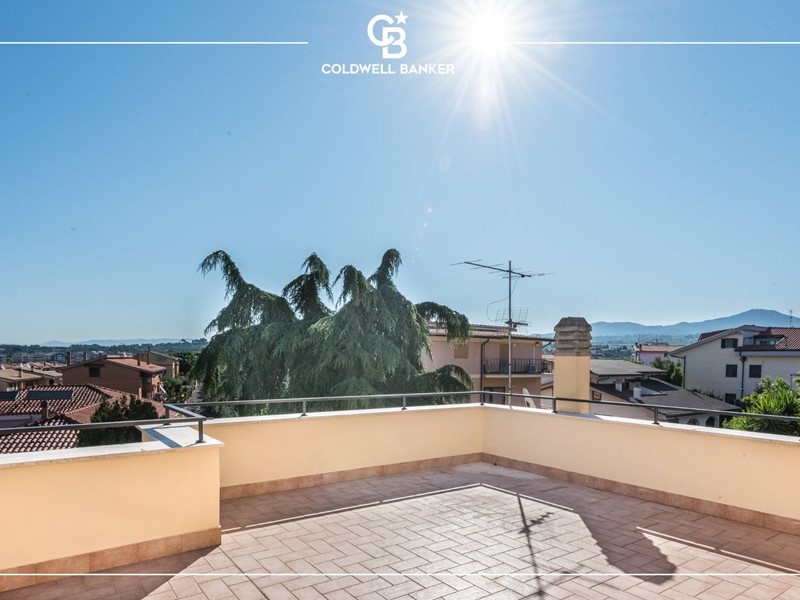 CIAMPINO nella parte più richiesta del Comune, Via Mura dei Francesi e precisamente in Via Francesco Vella, una Via raccolta che accoglie pochi edifici di piccole dimensioni e ricca di verde; la Coldwell Banker Krea Case è lieta di proporre in vendita un appartamento bilocale in villa ubicato al piano Attico con doppia esposizione ed uno splendido terrazzo di ampia metratura panoramico sui Castelli Romani. L'immobile gode di una eccellente esposizione e luminosità, è stato oggetto di recente ristrutturazione ed è inserito in un piccolo stabile in tinta di soli due piani, ottimamente mantenuto e che presenta una gradevole area comune di ingresso.