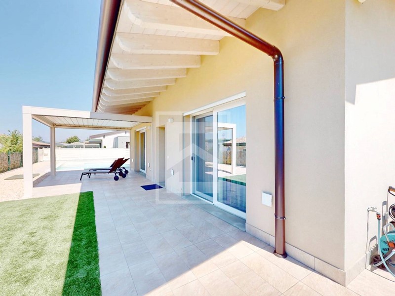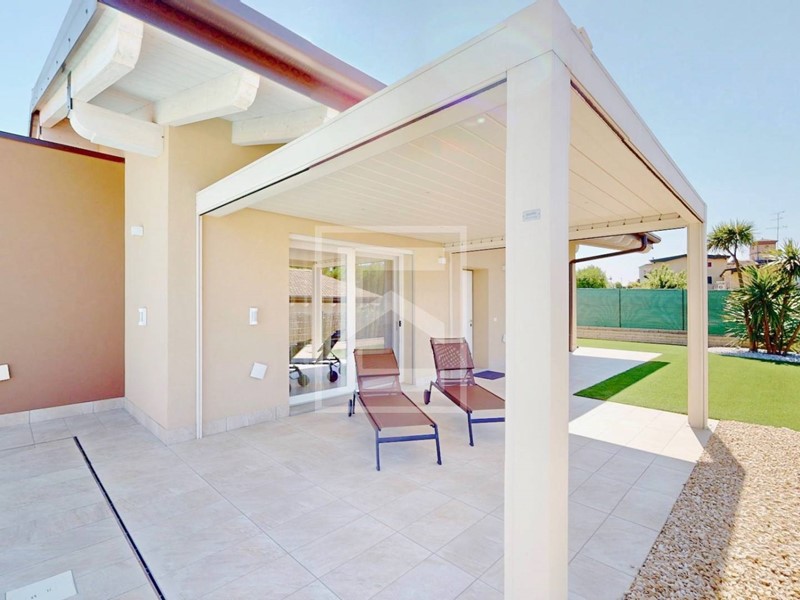 Proponiamo elegante villa singola in stato impeccabile e disposta completamente al piano terra compreso il garage doppio, garantendo una comodità senza pari, immersa in un curatissimo giardino su 4 lati dotato di irrigazione automatica, luci notturne, una capiente piscina e una biopergola elettrica.