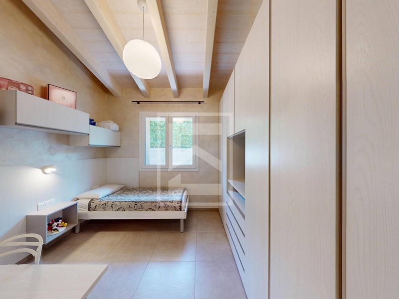 Le dotazioni sono complete per garantire il massimo confort abitativo come la classe energetica A4, impianto fotovoltaico, tetto e pareti ventilati, riscaldamento a pavimento, impianto climatizzazione, impianto allarme volumetrico e periferico, tapparelle elettriche, domotica, zanzariere, addolcitore per l'acqua.