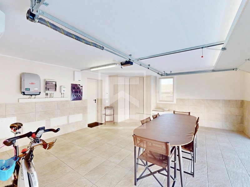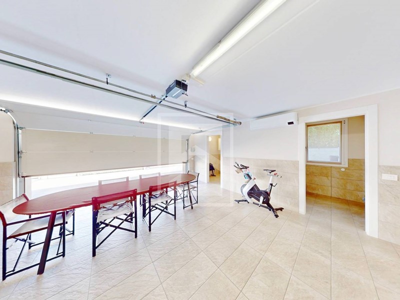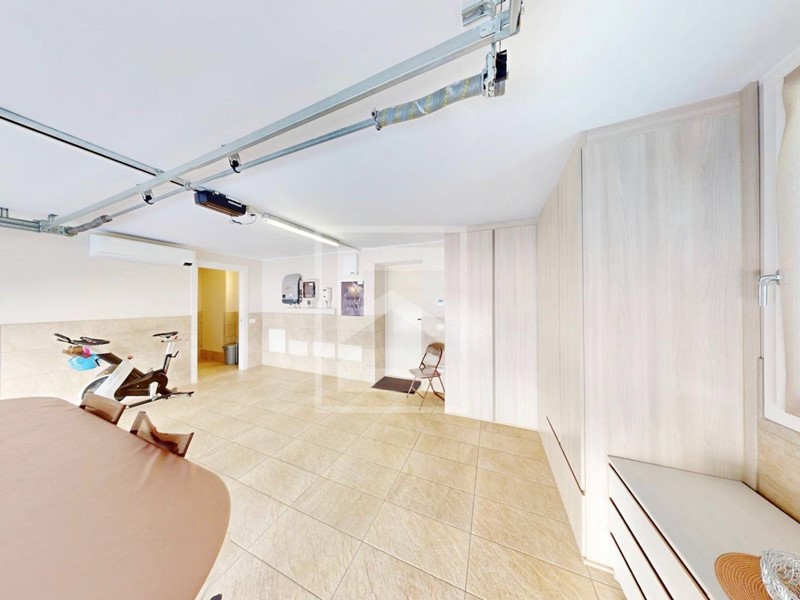 Completa la proprieta' l'ampio garage doppio piastrellato, dotato di basculante sezionale elettrica finestra e di pompa di calore caldo/freddo per utilizzarlo volendo anche come zona ludica.
