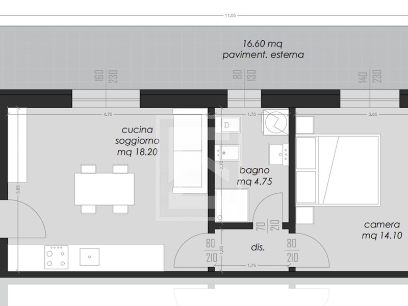 Nella zona notte insistono una camera da letto matrimoniale e un bagno completo finestrato.