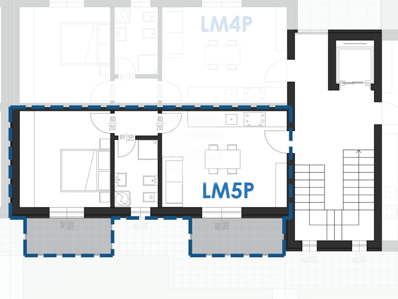 Gli appartamenti si compongono di zona living open che accoglie il salotto e la cucina godibili anche dal giardino o dal terrazzino grazie alle ampie vetrate scorrevoli.