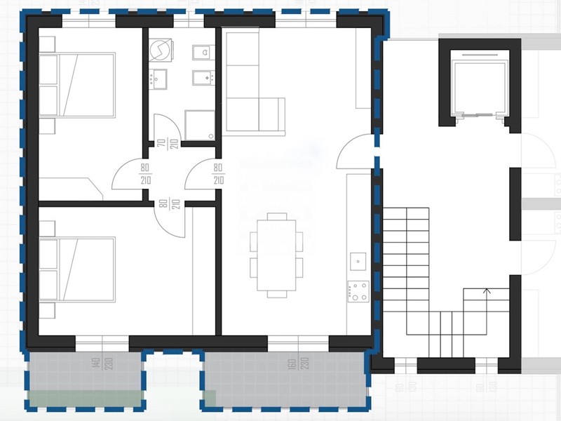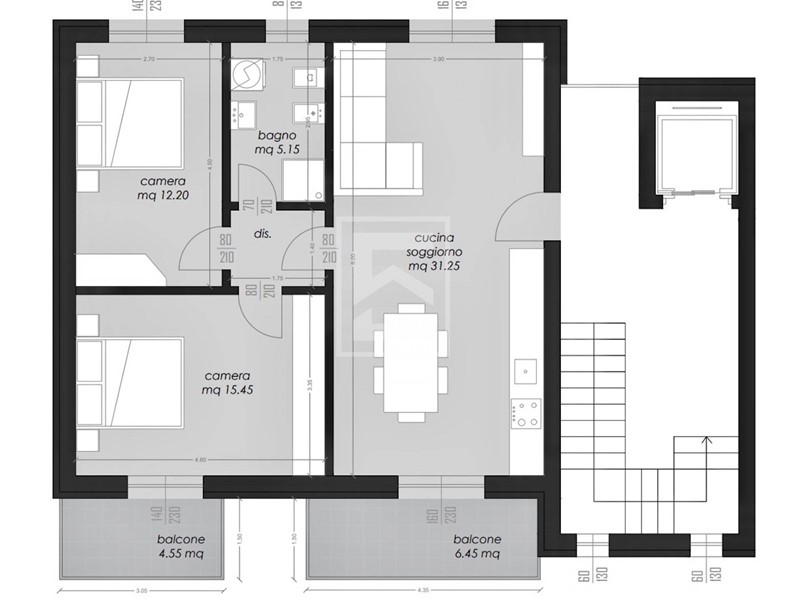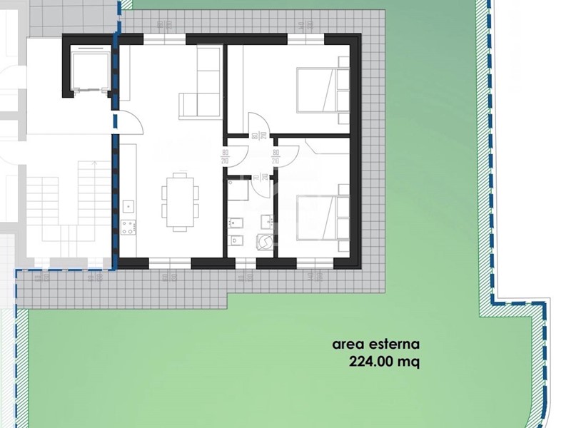 Gli appartamenti si compongono di zona living open che accoglie il salotto e la cucina godibili anche dal giardino o dal terrazzino grazie alle ampie vetrate scorrevoli.