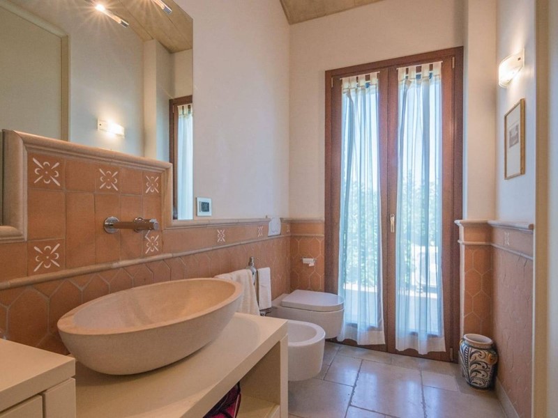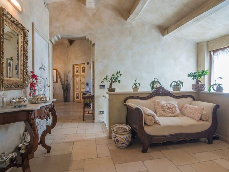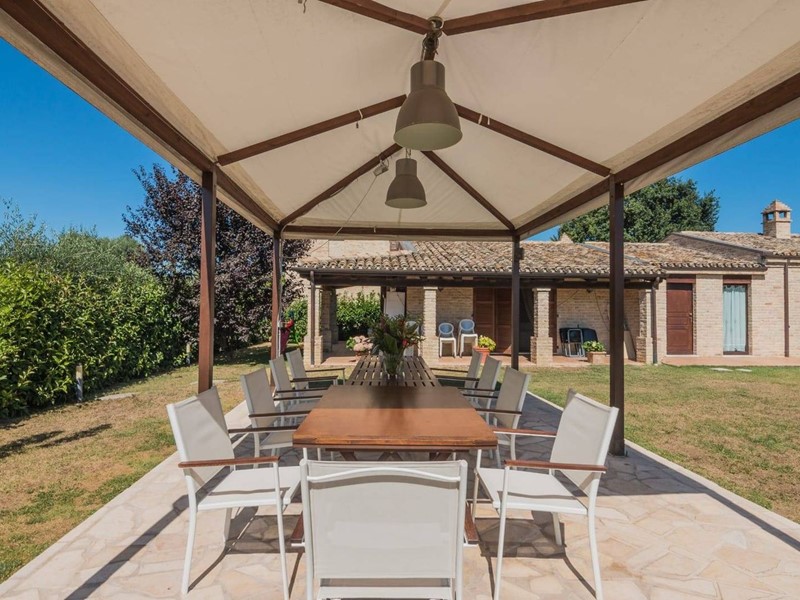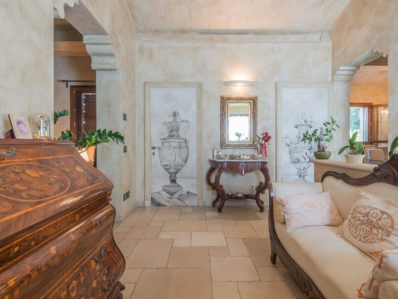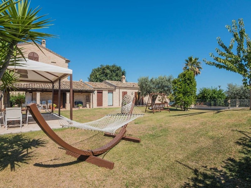 A poca distanza dalla spiaggia di Porto San Giorgio, in posizione collinare con incantevole vista panoramica sui Monti Sibillini e sul porto turistico della citta, elegante villa singola delle dimensioni totali di circa 400 mq, dislocati su due livelli, composta di: piano terra, delle dimensioni di circa 160 mq, costituito da ingresso principale su ampio salone con camino, cucina abitabile, tre camere da letto, due bagni, un ampio porticato di circa 30 mq ed un affascinante giardino privato di circa 1.000 mq, accuratamente piantumanto con piante ornamentali ed attrezzato con gazebo vivibile, piscina idromassaggio e zona parcheggio. Il piano seminterrato, delle dimensioni di circa 240 mq ed accessibile atraverso una elegante scalinata interna realizzata in marmo "Biancone di Trani", risulta composto di un ampio salone con camino centrale, una cucina abitabile, una camera da letto, un bagno, un locale multiuso, una lavanderia ed un comodo garage avente accesso dall'esterno tramite serranda basculante. L'immobile, di assoluto pregio e di rara reperibilità sul territorio, risulta rifinito con ottimi materiali quali pavimentazione in cotto "Cusimano" e "Pietre di Gerusalemme", infissi in legno con doppio vetro, zanzariere e predisposizione per inferriate alle finestre, impianto di climatizzazione, riscaldamento a pavimento, impiato di allarme e porte interne decorate.