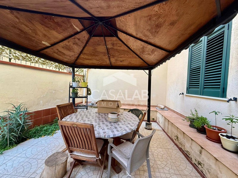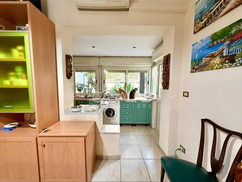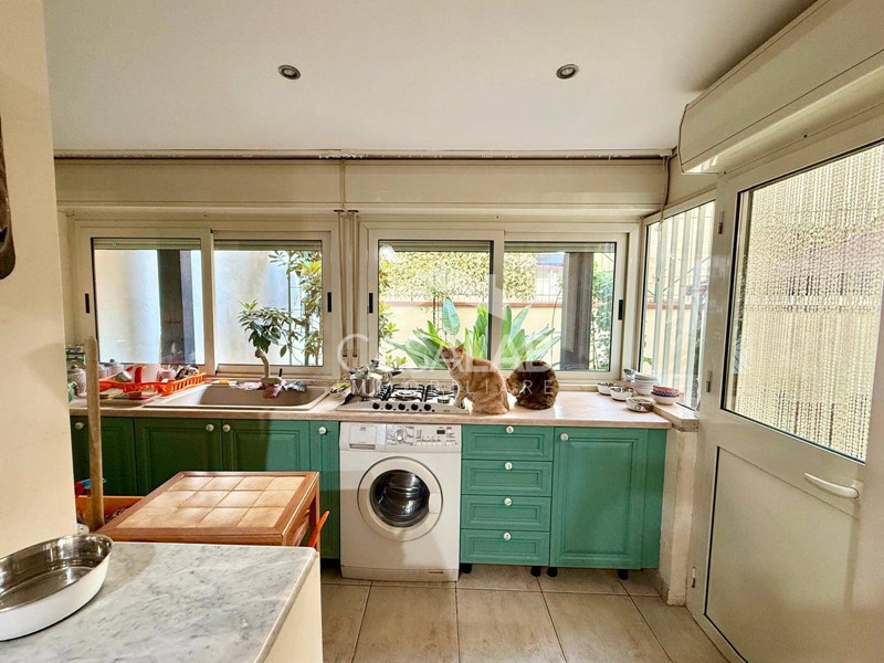Dalla cucina si accede a un grazioso cortile esterno, perfetto per trascorrere momenti di relax allaria aperta, organizzare pranzi in famiglia o creare un angolo verde su misura.