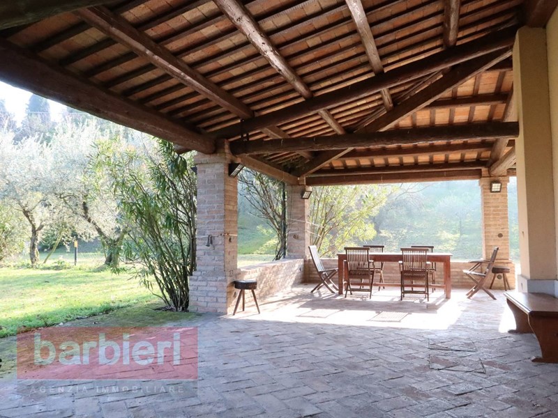Vendiamo nelle primissime coline di Cesena, spettacolare villa singola con vista panoramica disposta su due livelli. L'immobile, in posizione riservata e sopraelevata rispetto alle altre ville, è disposto su tre livelli. Al piano terra troviamo un ampia tavernetta, completa di cucina, bagno e ripostiglio con affaccio diretto sul meraviglioso portico che circonda la casa. Al piano primo si sviluppa una calda e accogliente zona giorno, con cucina separata. Dal disimpegno si accede alla zona notte composta da tre camere da letto, ciascuna dotata di un bagno. Dal soggiorno è possibile introdursi, tramite scala interna, nel soppalco caratterizzato da ulteriori tre ambienti. Soluzione unica ed invidiabile con oltre 16.000 mq di giardino con tanta vegetazione curata nei minimi dettagli e più di 100 ulivi, con tre pozzi e doppio ingresso.