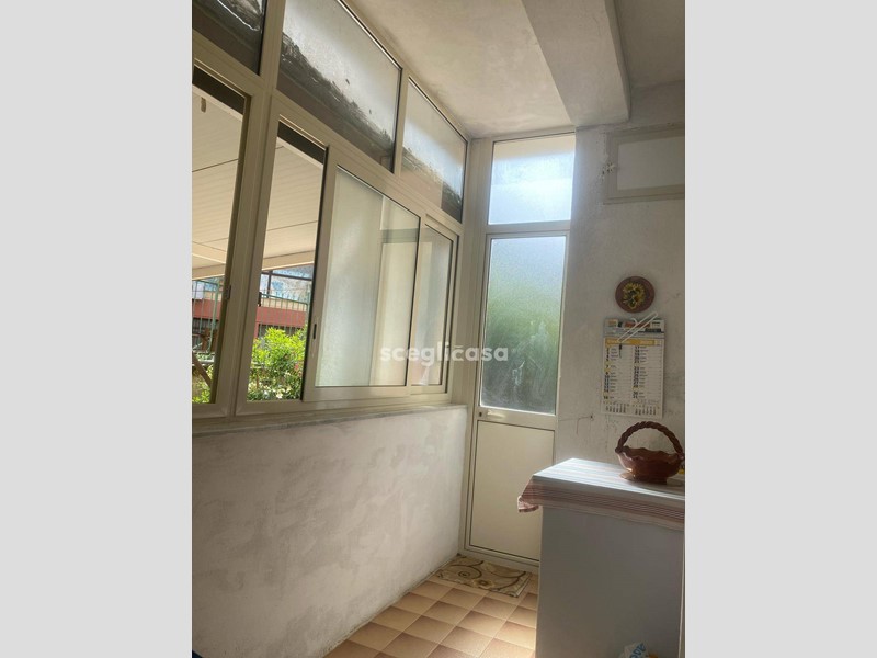 L'appartamento internamente ha una quadratura di 106mq, suddivisa su un'unico livello, ed è composto da: cucina abitabile con veranda, salone, 2 comode camere da letto matrimoniali, un ripostiglio, un bagno con doccia. Gli infissi sono in alluminio e doppio vetro camera. L'appartamento si presenta in discreto stato.