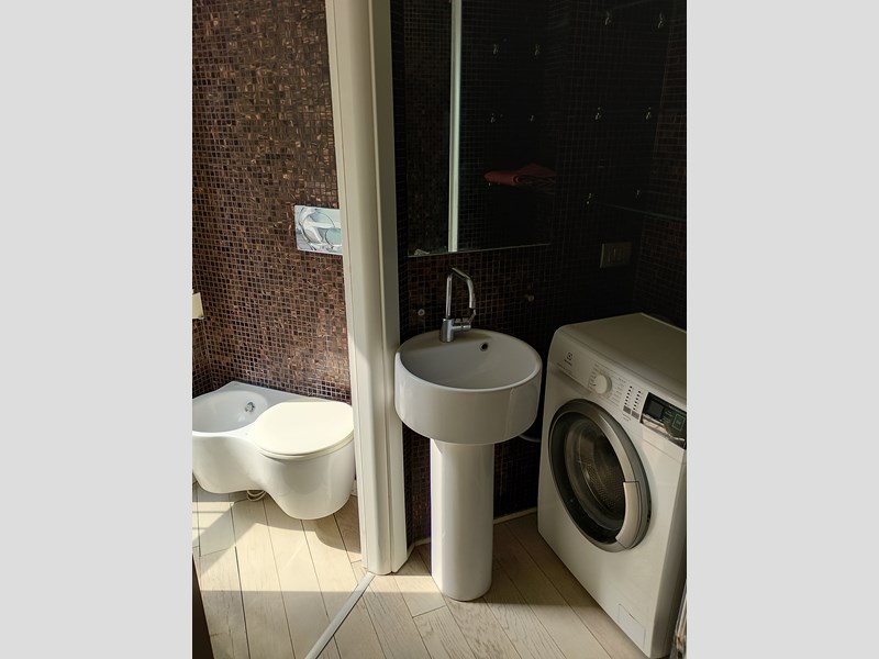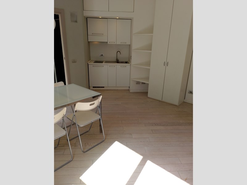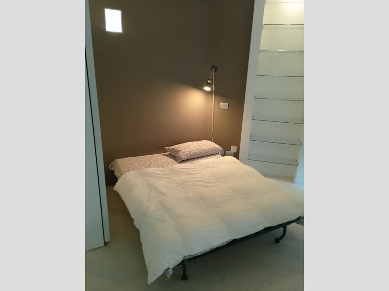 Composto da: ampio e luminoso locale open space in parquet con divano letto, angolo cottura con piastre a induzione, zona pranzo, bagno in mosaico con lavatrice, ripostiglio soppalcato. Completamente arredato su misura come da foto. Stabile medio signorile con portineria ascensore e possibilità di ricovero bici in cortile. Predisposto wi/fi e tv. Canone mensile 1200€/mese, pagamento intero anticipato alla firma del contratto. Contratto anche con Azienda. No Agenzie e costi di Agenzia.
