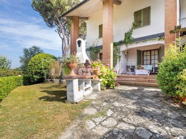MARINA DI PISA NS. ESCLUSIVA: prestigiosa soluzione abitativa per chi cerca un contesto riservato, con ampi spazi verdi sapientemente piantumati che garantiscono indipendenza e privacy. L'appartamento, oggetto di vendita, è individuato al piano terra rialzato di villa signorile composta di altre cinque unità immobiliari, a breve distanza dal porto ed è caratterizzata da un'atmosfera di prestigio e comfort. Ristrutturato nei primi anni 2000, è suddiviso in cinque confortevoli vani, oltre ad un portico e due terrazze abitabili. Corredato di ampio giardino in proprietà esclusiva, di una spaziosa cantina al piano seminterrato e di garage nel cortile a comune con le altre abitazioni (facilità di parcheggio), offre un' esperienza abitativa di qualità.
