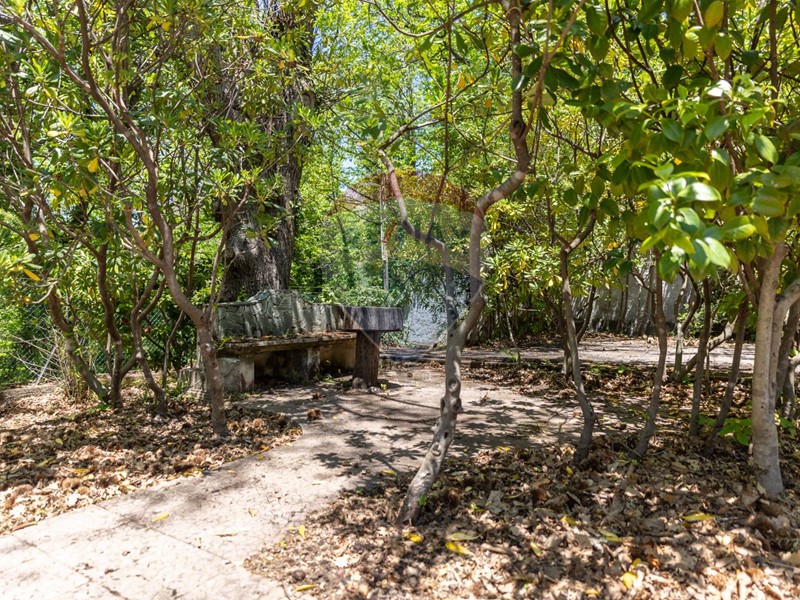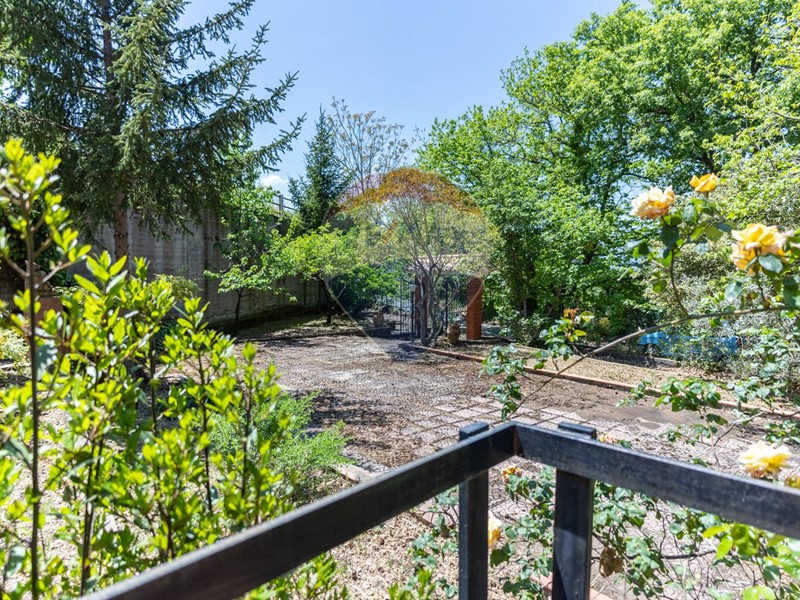 Dal cancello su strada, molto ampio e comodo perchè con invito facilitato per le auto, si accede al giardino, caratterizzato da un'ampia varietà di alberi, anche da frutto, e dalle giuste proporzioni per chi ama spazi verdi facili da gestire.