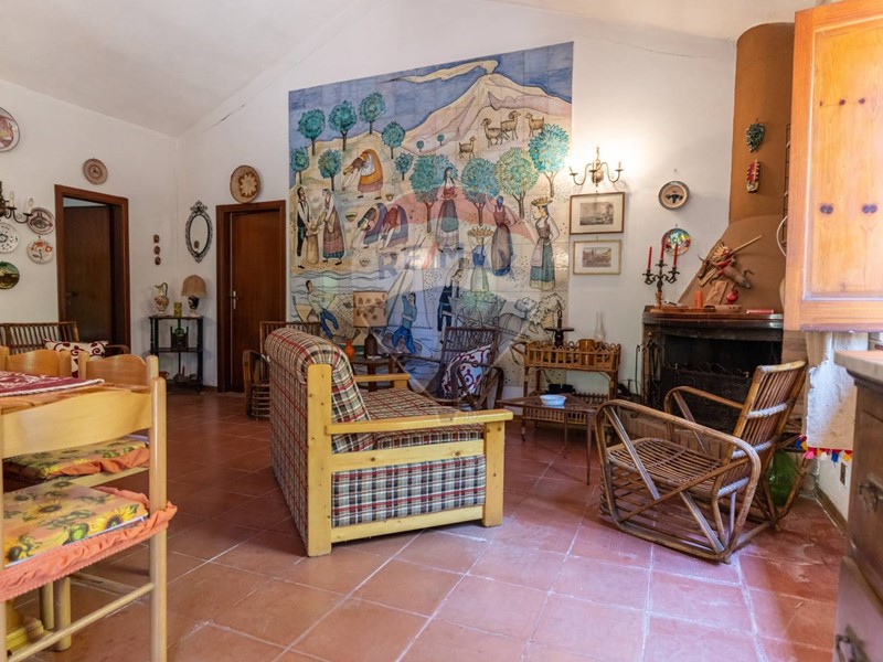 Dalla tettoia si accede all'abitazione principale: una casa su un unico livello libera da quattro lati e in buono stato di conservazione. Gli ambienti interni sono ben distribuiti e lo spazio ben sfruttato; si divide tra il grande soggiorno con angolo pranzo e camino, la cucina, la camera da letto matrimoniale e il bagno.