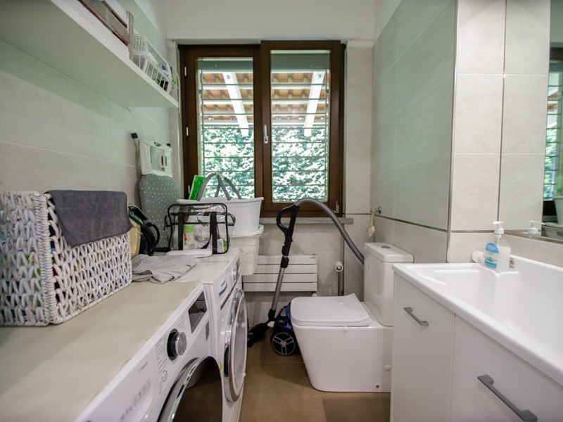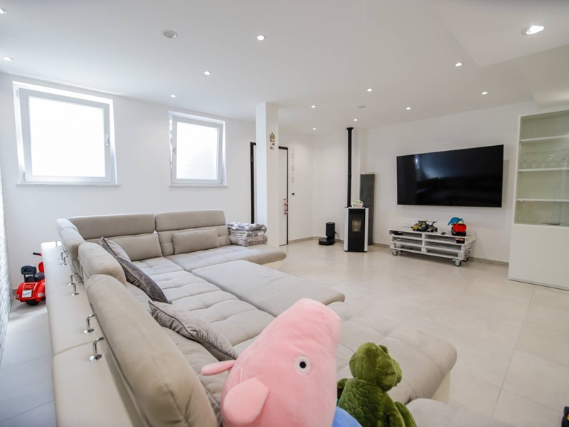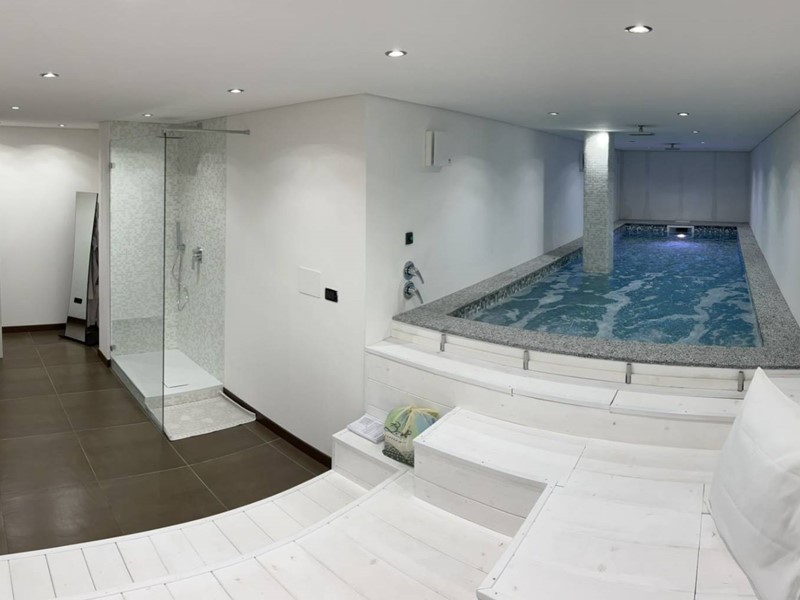 Il piano seminterrato di 220 m²è stato rifinito anche questo con materiali di pregio: zona spa/relax, zona tv, zona cucina, bagno, lavanderia, cantina, doppia dispensa e autorimessa adiacente di 70 m² che può ospitare 4/5 mezzi.