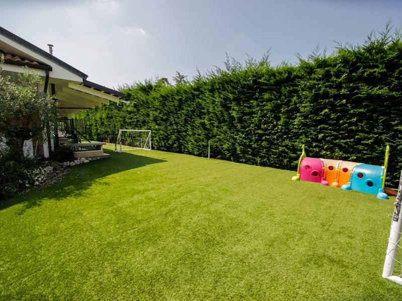 Prato sintetico circostante, in parte con pavimento fluttuante