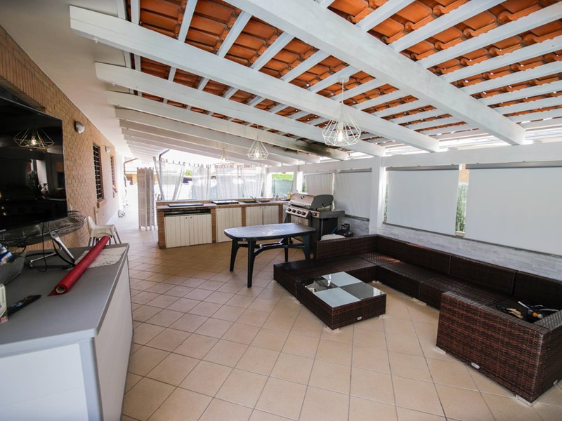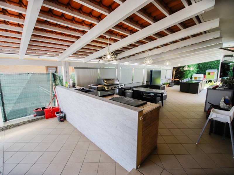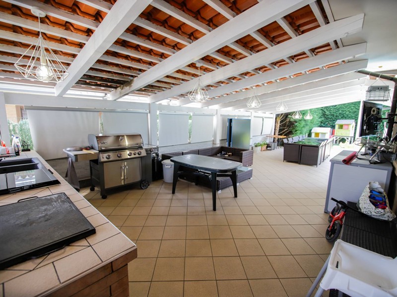 Cucina esterna completa di fuochi, barbecue, il tutto ombreggiato con ampia veranda aperta