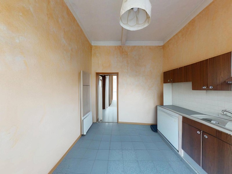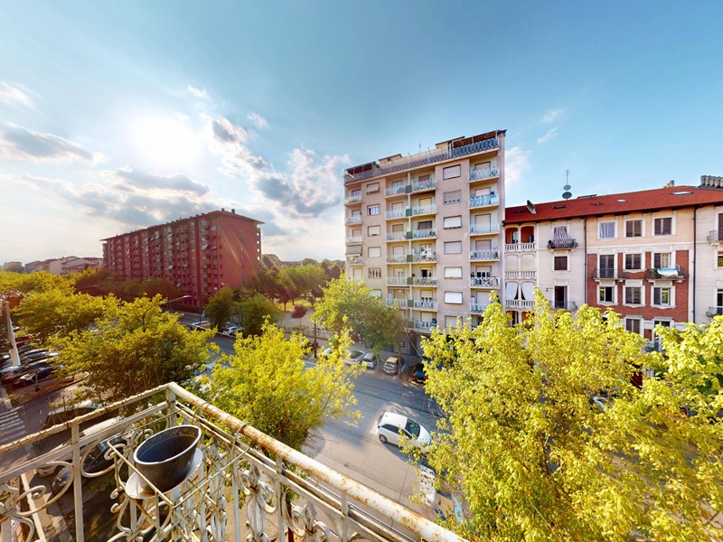 L'immobile, con accesso da ballatoio, è composto da ingresso living su cucina abitabile, camera da letto con balcone che affaccia su corso Belgio e bagno.