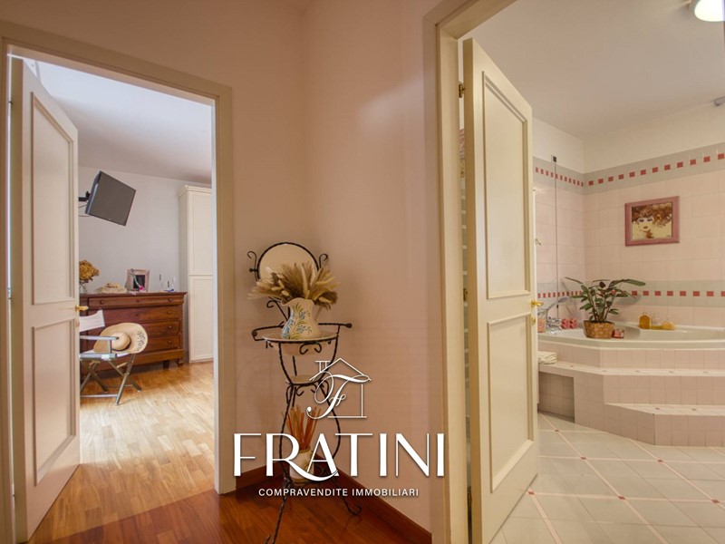 La zona notte, ben separata da un disimpegno, comprende una lavanderia, tre camere da letto (di cui una matrimoniale con accesso al secondo terrazzo) e un bagno padronale di alta qualità, dotato di vasca idromassaggio.