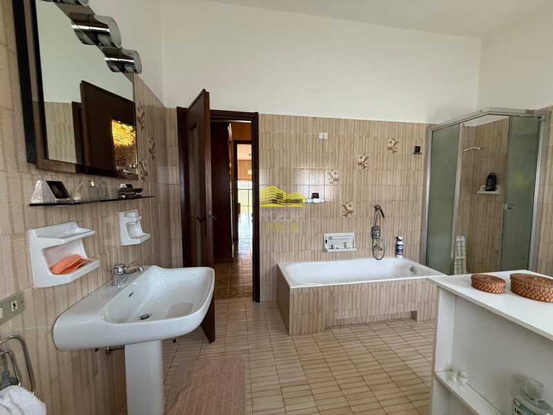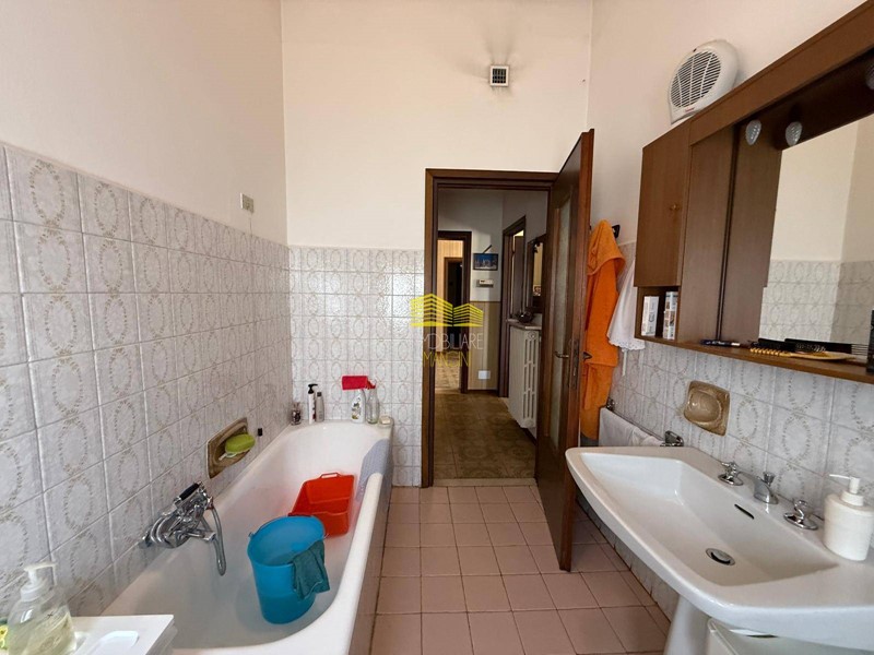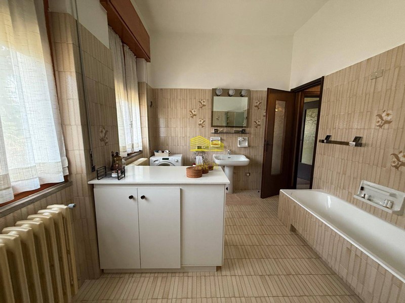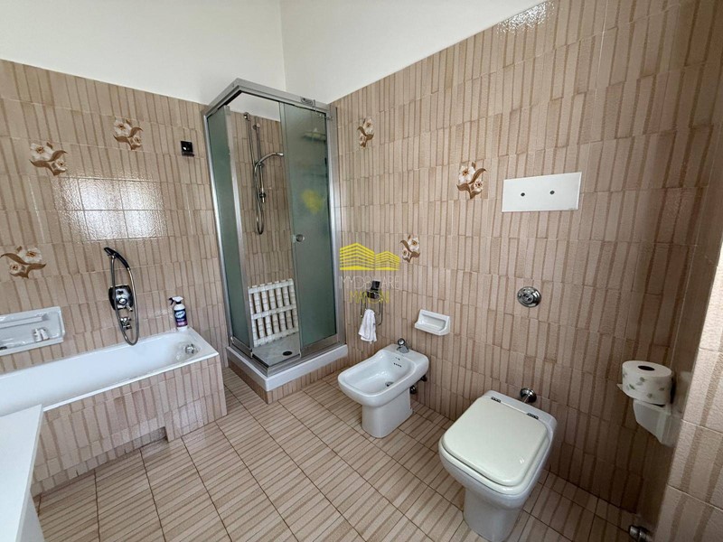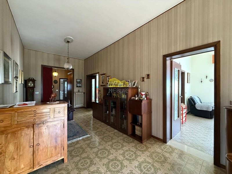 Limmobile, di costruzione anni '70, è composto da giardino esclusivo che circonda tutto limmobile sui 4 lati liberi, ingresso tramite scala al PIANO RIALZATO in ampia anticamera dalla quale si accede alla sala da pranzo con accesso su BALCONE con annessa CUCINA ABITABILE, percorrendo poi l'anticamera si accede a grande e luminoso salotto di 21 mq con accesso a secondo BALCONE; sul fondo dell'anticamera d'ingresso si accede al disimpegno antinotte dove troviamo ampio bagno finestrato e due camere da letto, tutte e due matrimoniali, rispettivamente di 18 e 20 metri quadrati.