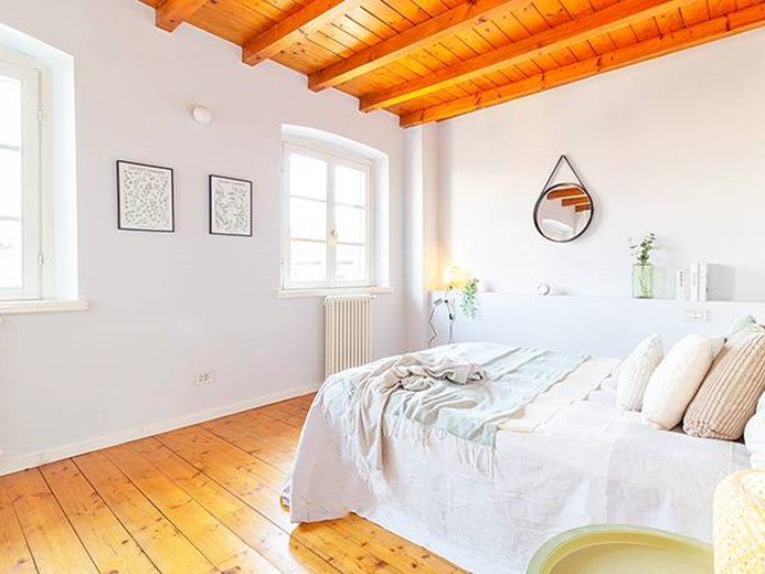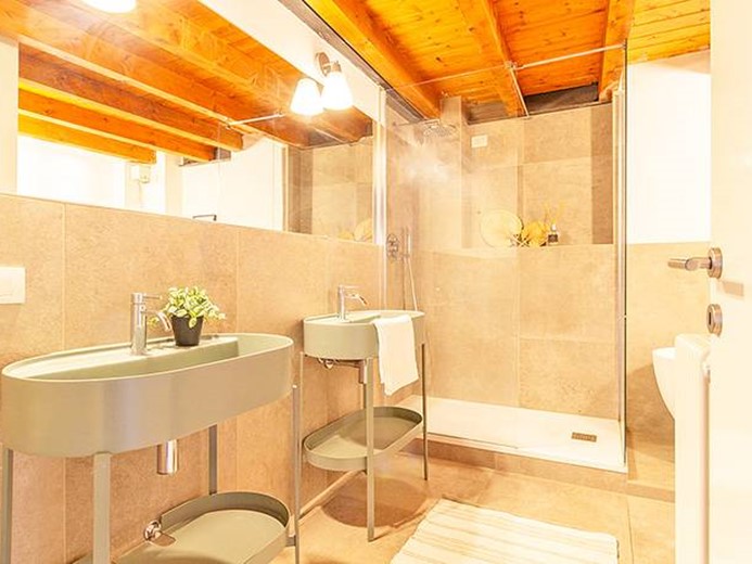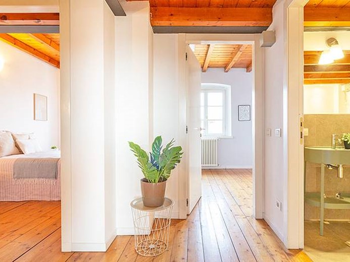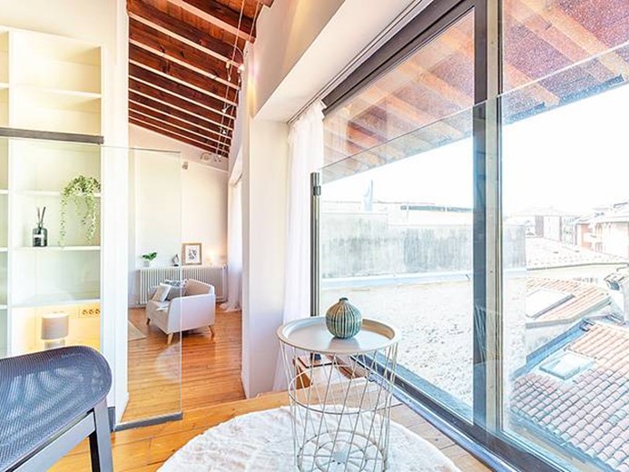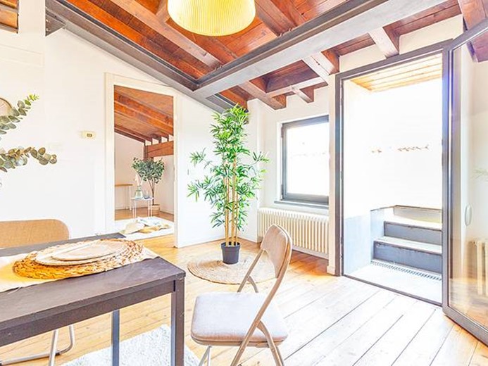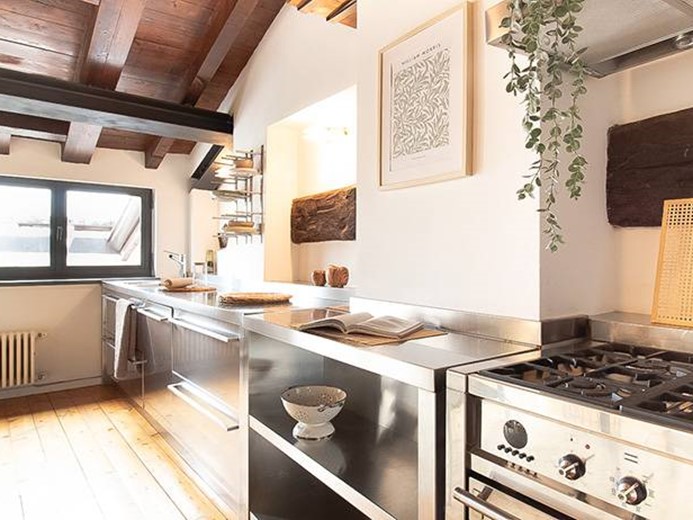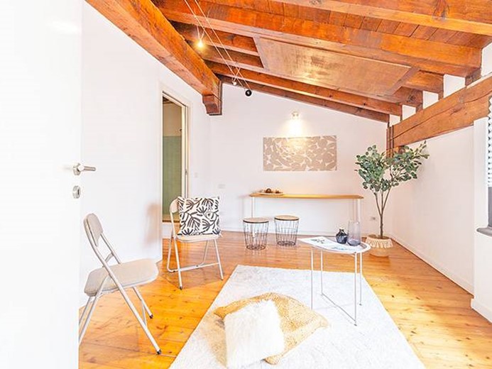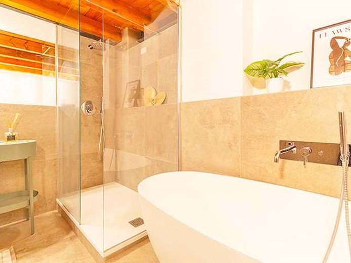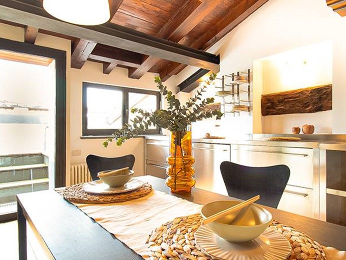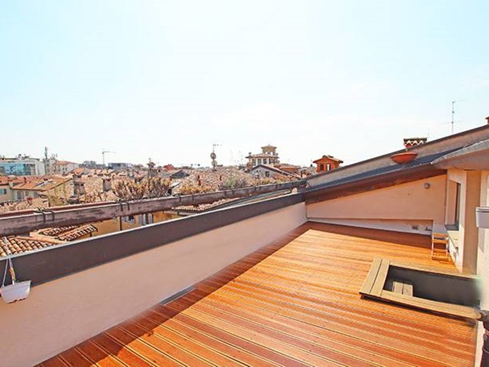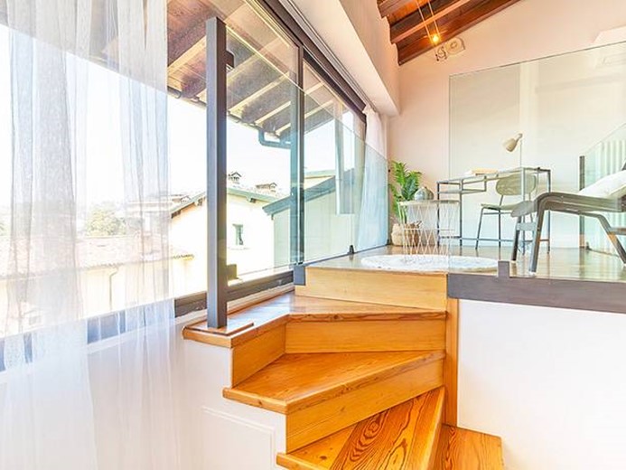 La proprietà è stata sapientemente ristrutturata in un mix contemporaneo di elementi storici e moderni, dotata di enormi e luminossissime finestre che aprono la vista sul centro storico, dotata di pavimentazioni in parquet, soffitti in travi in legno a vista con elementi di sostegno in acciaio sempre a vista, bagni modernamente rifiniti, riscaldamento autonomo con radiatori e stufa moderna, aria condizionata, infissi con doppio vetro sia in legno che in alluminio slim cut scorrevoli a taglio termico, la terrazza e splendidamente rifinita in legno, dotata di irrigazione automatica e piantumazione, gode di una vista straordinariamente aperta che spazia da città alta al centro cittadino.