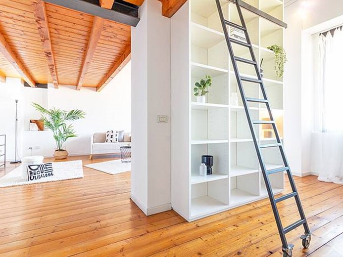 Al piano quarto ampio ingresso con zona studio panoramico aperto prospicente grandi finestre con vista sul centro storico, ampio soggiorno a doppia altezza con camino moderno, 3 camere da letto, 2 bagni e zona armadi con ripostiglio.