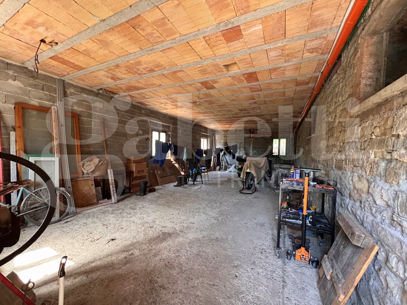 La proprietà comprende anche un piano terra con fondi e garage, una soffitta e circa 4.000 mq di terreno, ideale per chi desidera uno spazio verde da vivere o coltivare.