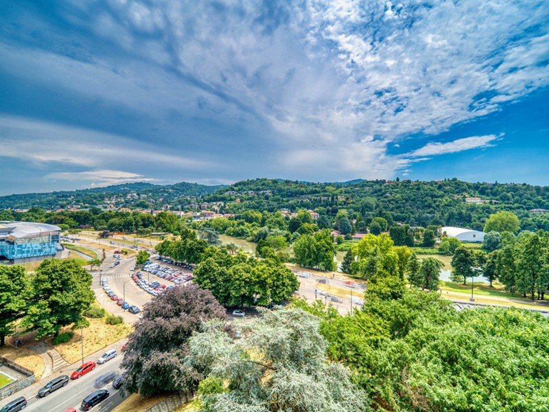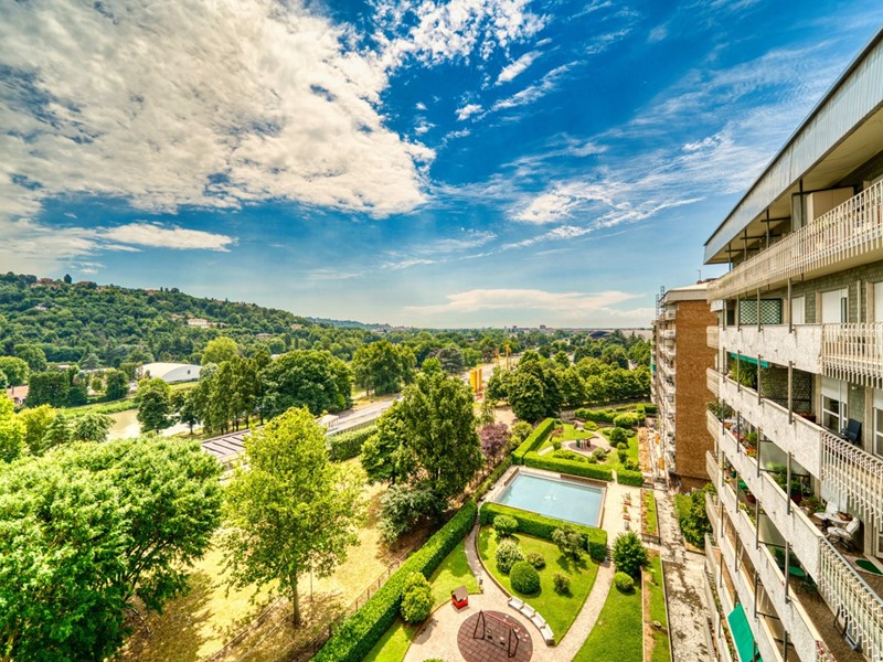 Quartiere NIZZA MILLEFONTI - Agenzia Gabetti Parella vende luminoso appartamento panoramico posto all'ottavo piano di uno stabile signorile con doppi ascensori, giardino condominiale, con affaccio su collina torinese e vista castello di Moncalieri.