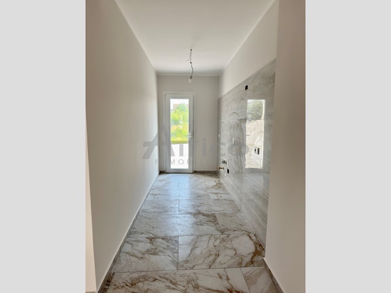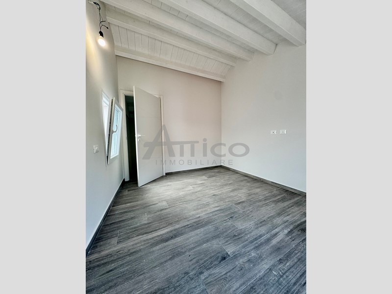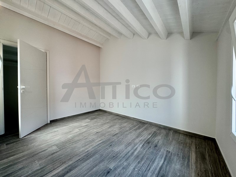 Contarina - Porzione di BIFAMILIARE RISTRUTTURATA completamente a NUOVO nel 2025, disposta su 2 livelli e composta da: doppio ingresso con porte blindate, soggiorno-cottura con accesso al giardino di circa 300mq, 2 bagni, 2 letto (1 matr. + 1 singola) + 2 stanze studio (1 al P.T. e 1 al P.1°). Riscaldamento a pavimento, fotovoltaico da 3 kW, tapparelle elettrice, cappotto esterno da 12cm, tetto isolato con 14cm lana roccia + 10cm EPS e guaina. Doppia predisposizione del clima.