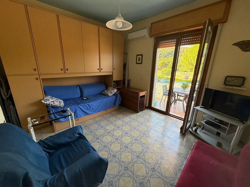Ascea Marina: Località Velia, appartamento posto al piano primo, composto da corridoio, cucinotto, due camere, bagno con doccia, due balconi, arredato. 350 mt dal mare.
