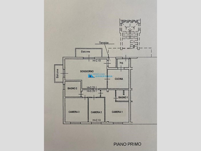 Montignoso, si vende bellissimo appartamento di ampia metratura (120 metri quadrati) e di recente costruzione. Posto al piano primo e ultimo di piccolo fabbricato si compone di ingresso, cucina, ampio soggiorno, disimpegno, tre camere e due bagni oltre a tre terrazzi e due posti auto. Tetto in legno a vista con mezzane, pavimento parte in gres porcellanato e parte in parquet di Teak, aria condizionata, riscaldamento con caldaia a gas e termosifoni in acciaio. Attualmente locato ad uso palestra con rendita mensile di € 1.000.