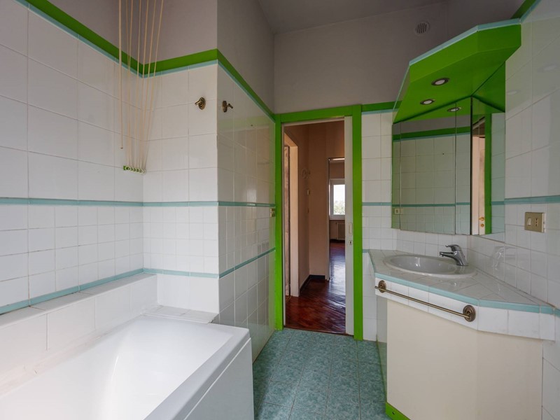 L'appartamento vanta anche due balconi, uno dei quali angolare, che offrono una vista aperta e la possibilità di godere di momenti all'aria aperta. A completare la proprietà, un garage privato e una cantina, ideali per offrire ulteriore spazio.