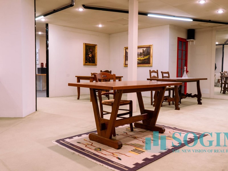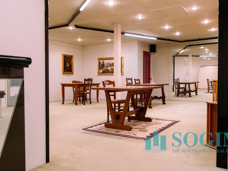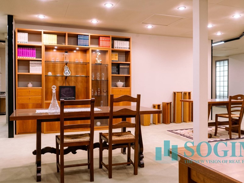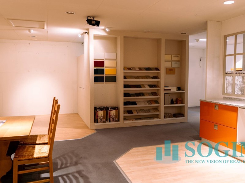 Al piano primo sono ubicati il negozio-esposizione di mq 99 e un magazzino di mq 215 ca con accesso al balcone, entrambi gli spazi sono dotati di pareti amovibili che permettono la personalizzazione dell'ambiente; completa il piano un appartamento di mq 109 costituito da cucina abitabile, soggiorno, due camere da letto e un bagno.