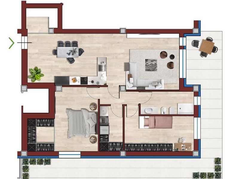 L'Immobiliare Unika propone in esclusiva di vendita nel Comune di Porto San Giorgio (FM), in prima fila mare in zona Sud, appartamento di circa 100,92 mq di nuova realizzazione posto al piano primo con balcone e terrazzo perimetrale di circa 34,12 mq a servizio della zona giorno e della zona notte, per una superficie totale commerciale pari a 117,98 mq. Appartamento servito da ascensore. L'immobile si compone di ingresso su ampio ed elegante soggiorno cucina open space, con accesso diretto esterno su balcone abitabile posto a Sud, disimpegno notte che comprende una camera matrimoniale con cabina armadio e balcone, comodo e utile ripostiglio-lavanderia, seconda camera doppia con accesso diretto al balcone e bagno con finestra. Completa la proprietà posto auto nella corte condominiale esclusiva. Possibilità di cantina. Consegna prevista per fine anno 2025. La soluzione abitativa sarà realizzata secondo le ultime tecnologie costruttive, con lo scopo di ottenere un'elevata qualità tecnologica e un alto livello di confort, con particolare attenzione alle materie prime selezionate e alle finiture. Possibilità di personalizzazione degli ambienti interni secondo le esigenze del cliente, tramite la consulenza diretta di professionisti qualificati in sede. Opportunità irripetibile, per chi è in cerca di un prodotto innovativo, volto ad ottenere un forte risparmio energetico ed inserito in un contesto altamente esclusivo e riservato, fronte mare. Il nostro studio è a vostra disposizione per fornirvi ulteriori informazioni e dettagli. Classe energetica prevista "A+++". RIF.VV376. Immobiliare Unika 0734 300555 - 3271687900.