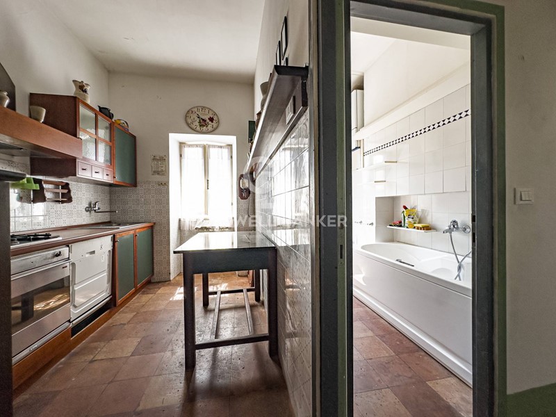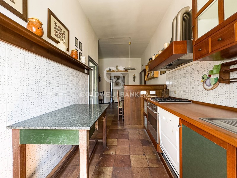 All'entrata troviamo un disimpegno che ci accompagna verso un ampio soggiorno con camino; tramite un comodo corridoio arriviamo alla cucina abitabile che affaccia sulla piazza; due camere matrimoniali e una cameretta; due bagni finestrati uno con doccia e uno con vasca idromassaggio.