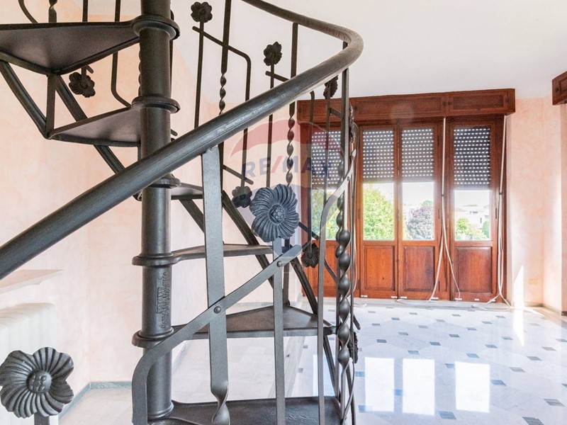 La villa si sviluppa su tre piani fuori terra, oltre a una dependance, locali accessori e uno splendido sistema di verande colonnate che si affacciano sul parco circostante. Laccesso principale è segnato da un vialetto scenografico, perfettamente incorniciato dal verde, che conduce allingresso padronale.