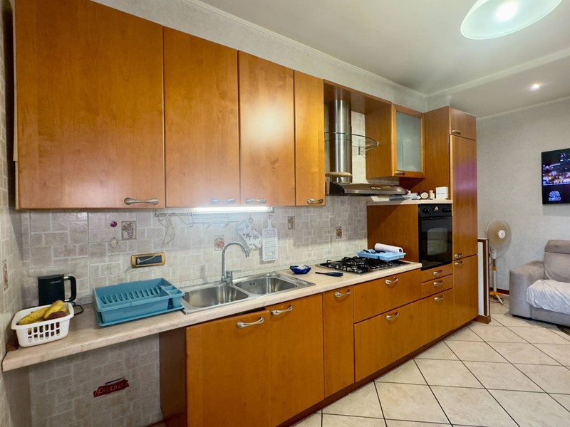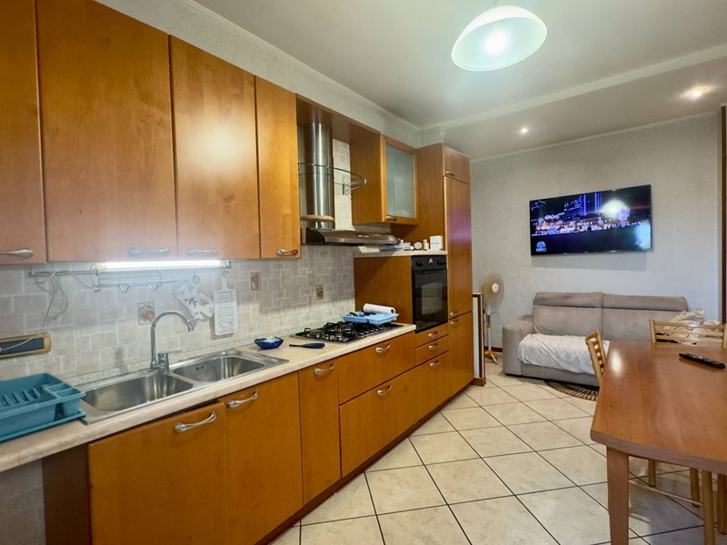 Entrando dallingresso principale, ci si ritrova subito nella zona giorno, un ambiente pratico e ben organizzato, dove soggiorno e cucina si fondono in un unico spazio aperto.
