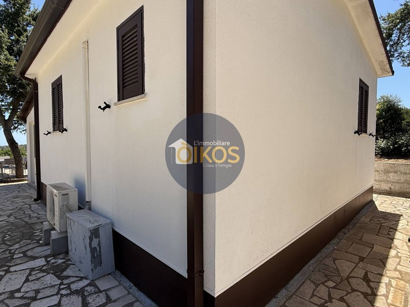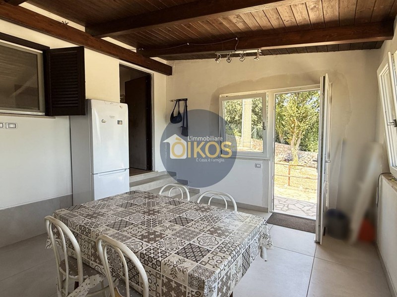 Labitazione, compatta ma sapientemente organizzata, offre tutto ciò che serve per vivere o trascorrere vacanze in totale comodità. Allesterno, una grande tettoia affacciata su un piazzale panoramico pavimentato diventa il cuore pulsante della casa. Qui è stata realizzata una zona attrezzata con cucina e luminosa zona pranzo finestrata, perfetta per cene estive e momenti conviviali