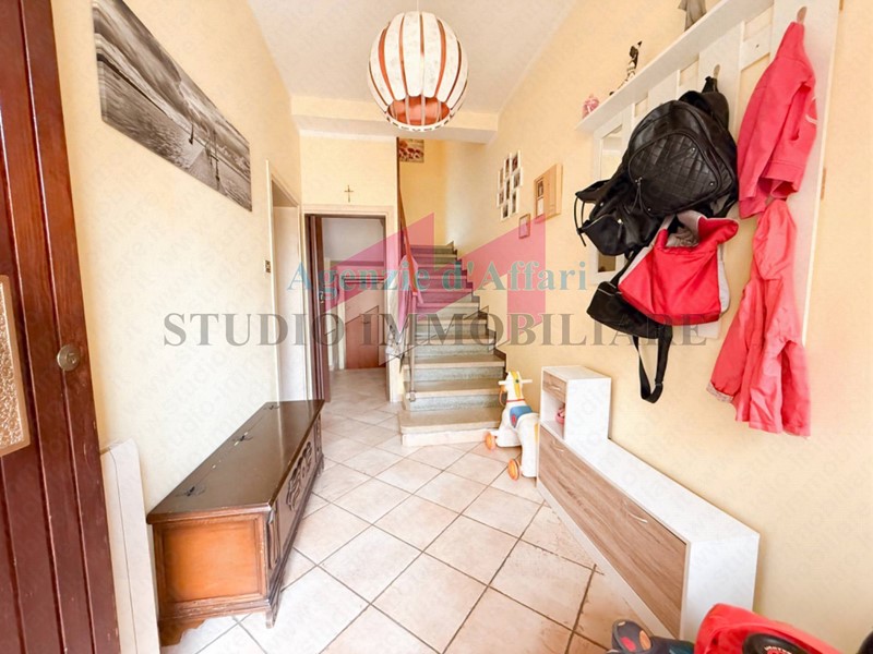 La proprietà, distribuita su due piani, è composta a piano terra da ingresso, soggiorno, cucina abitabile e ripostiglio/lavanderia ed al piano primo da tre camere da letto (una matrimoniale, una doppia ed una singola) ed un bagno con doccia. Completa la proprietà un ampio ripostiglio esterno.
