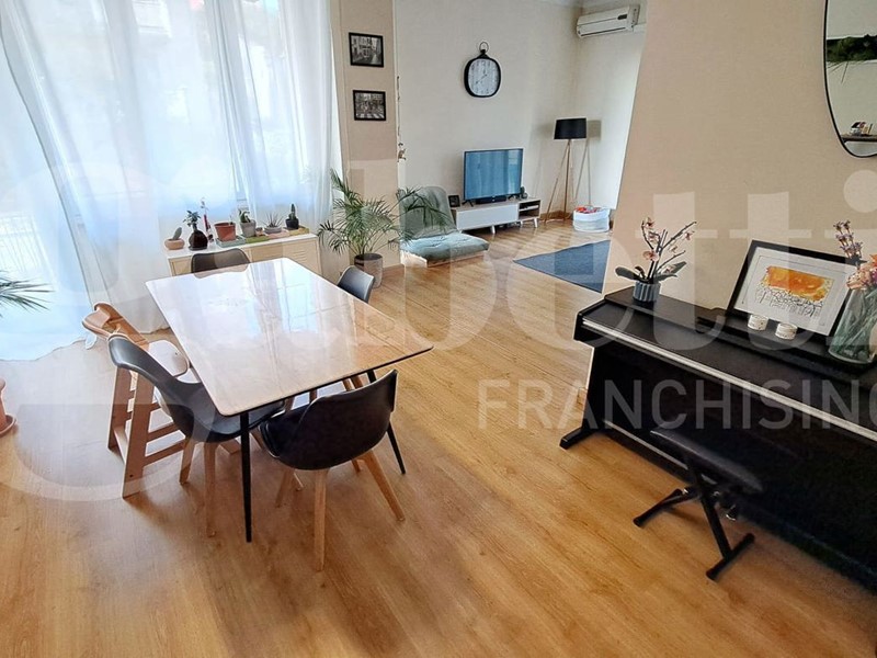 INTERNI: Ingresso arredabile, doppio soggiorno, disimpegno con ripostiglio, due camere matrimoniali, ampia camera media, camera singola, cucina abitabile, doppi servizi, 4 balconi e comodo box sotto casa.