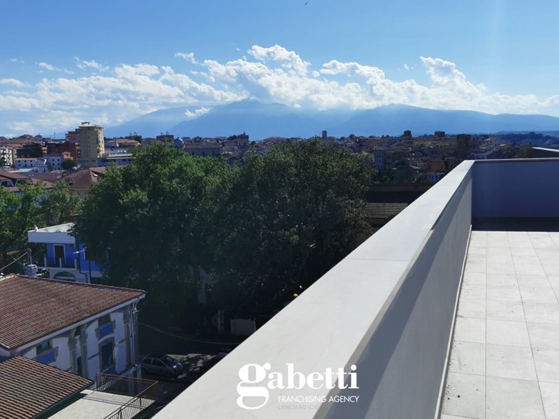 Rif.Ag.v361 A pochi passi dal centro di Lanciano, nella tanto richiesta e ben servita via Del Mare, che dispone anche di una comodissima pista ciclabile, proponiamo in vendita un bellissimo SUPER ATTICO di nuova costruzione. L'immobile, con circa 253 mq di spazio commerciale, è accompagnato da un meraviglioso terrazzo panoramico di 136 mq e si trova all'intero 5° e ultimo piano di una moderna e affascinante palazzina appena realizzata ed è dotato di un esclusivo diritto di accesso dal ascensore direttamente nella proprietà.