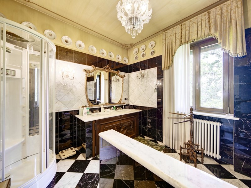 L'intera villa è protetta da infissi di qualità, grate di sicurezza, sistema di allarme e porte blindate. La costruzione è stata realizzata con materiali di pregio e finiture ricercate come porte in legno, marmo di Carrara, soffitti affrescati, vetro di murano, palchetto in noce, balaustra in ferro battuto, che conferiscono all'immobile eleganza e unicità. Oltre ad un comodo ascensore che collega i 3 livelli