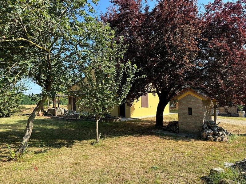 CODICE ANNUNCIO A132 - Castelnuovo Fogliani, appena fuori dal paese, VILLA INDIPENDENTE con GIARDINO piantumato di 1500 mq c.a., posta su due livelli, composta da: ingresso, salotto con camino, cucina abitabile, soggiorno, 3 camere da letto, doppi servizi, cantina e rimessa. Patio esterno, porticato, giardino e pozzo. Finemente ristrutturata, pronta da abitare! Prezzo adeguato.