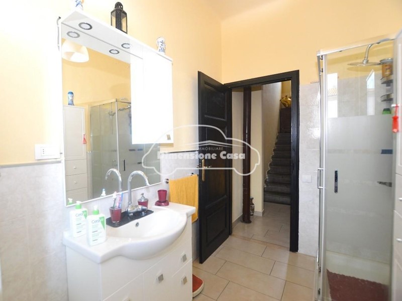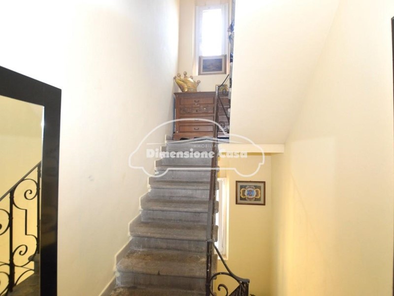 L'abitazione si sviluppa su due livelli più la mansarda abitabile e si compone al piano terra di ingresso, soggiorno, cucina abitabile, sottoscala uso ripostiglio; al piano primo disimpegno, due camere matrimoniali e bagno finestrato con doccia; mansarda divisa in due vani, di cui uno attualmente sfruttato come camera matrimoniale. Sul fronte resede pavimentata esclusiva e fabbricato in muratura composto da vano pluriuso con portico e terrazza coperta e garage con accesso dalla strada.