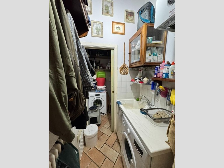 Doppio ingresso fronte -retro, cucinotto, ampia zona pranzo-soggiorno con camino, bagno e dispensa. Salendo una scala a chiocciola in legno si arriva nella zona notte composta da due camere e un bagno.