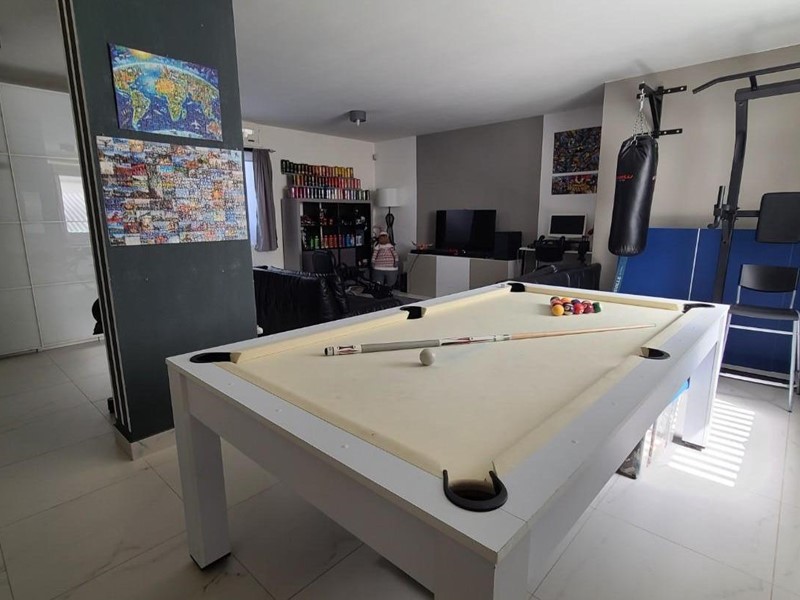 Nel piano seminterrato con accesso interno/esterno si trova al momento la stanza giochi con bigliardo, palestra, la stireria/lavanderia, il 4° bagno copleto di doccia, il vano termico.